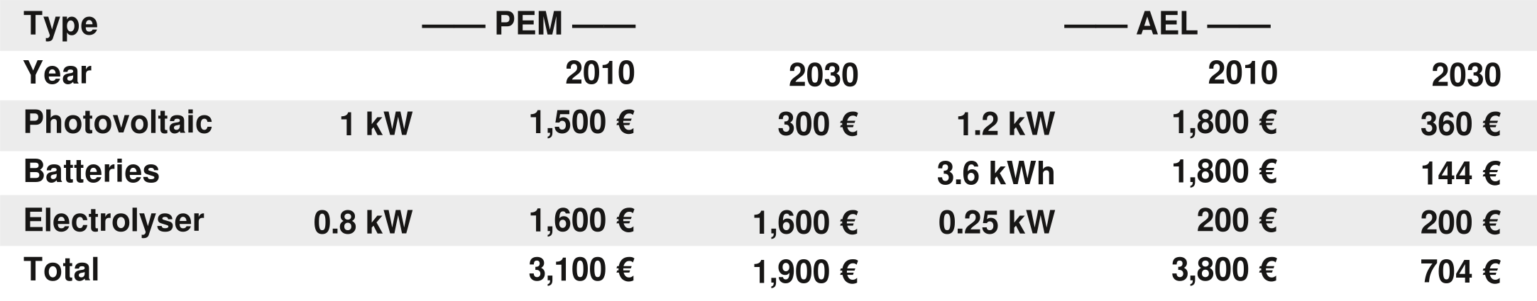 PEM or AEL electrolyzer: There had been a time when photovoltaics and batteries had been extremely expensive. No batteries are necessary at a PEM electrolyzer, making the best usage of the expensive photovoltaic. https://climate.pege.org/2026-corp/pem-ael.htm