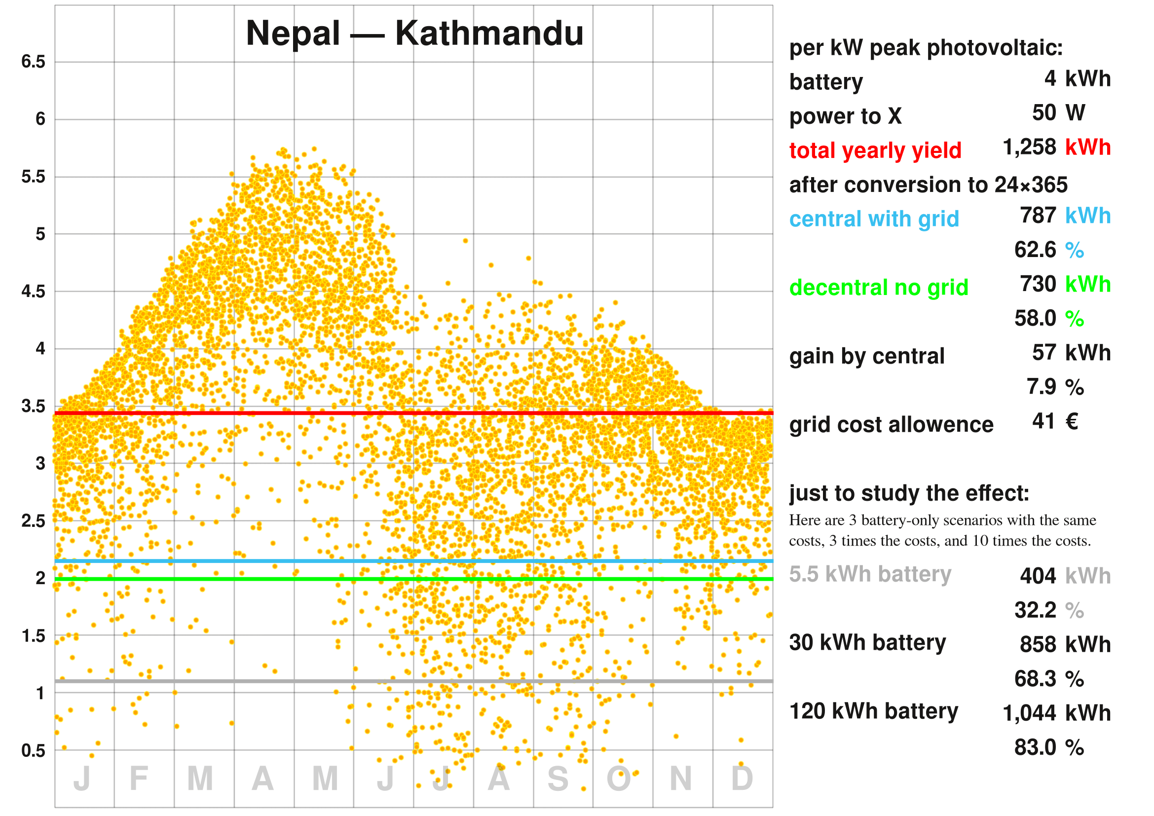 パラメータはまったく異なっていた。送電網は遠くの石炭発電所か水力発電所に接続することになっていた。地元で生産するという選択肢はなかったのだろうか?そうではなかった!